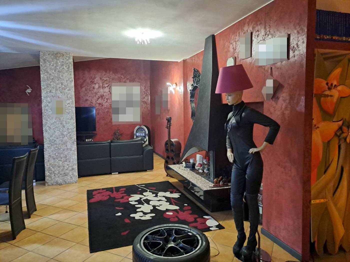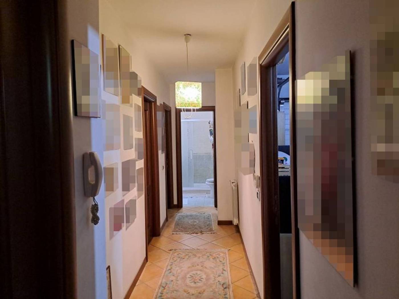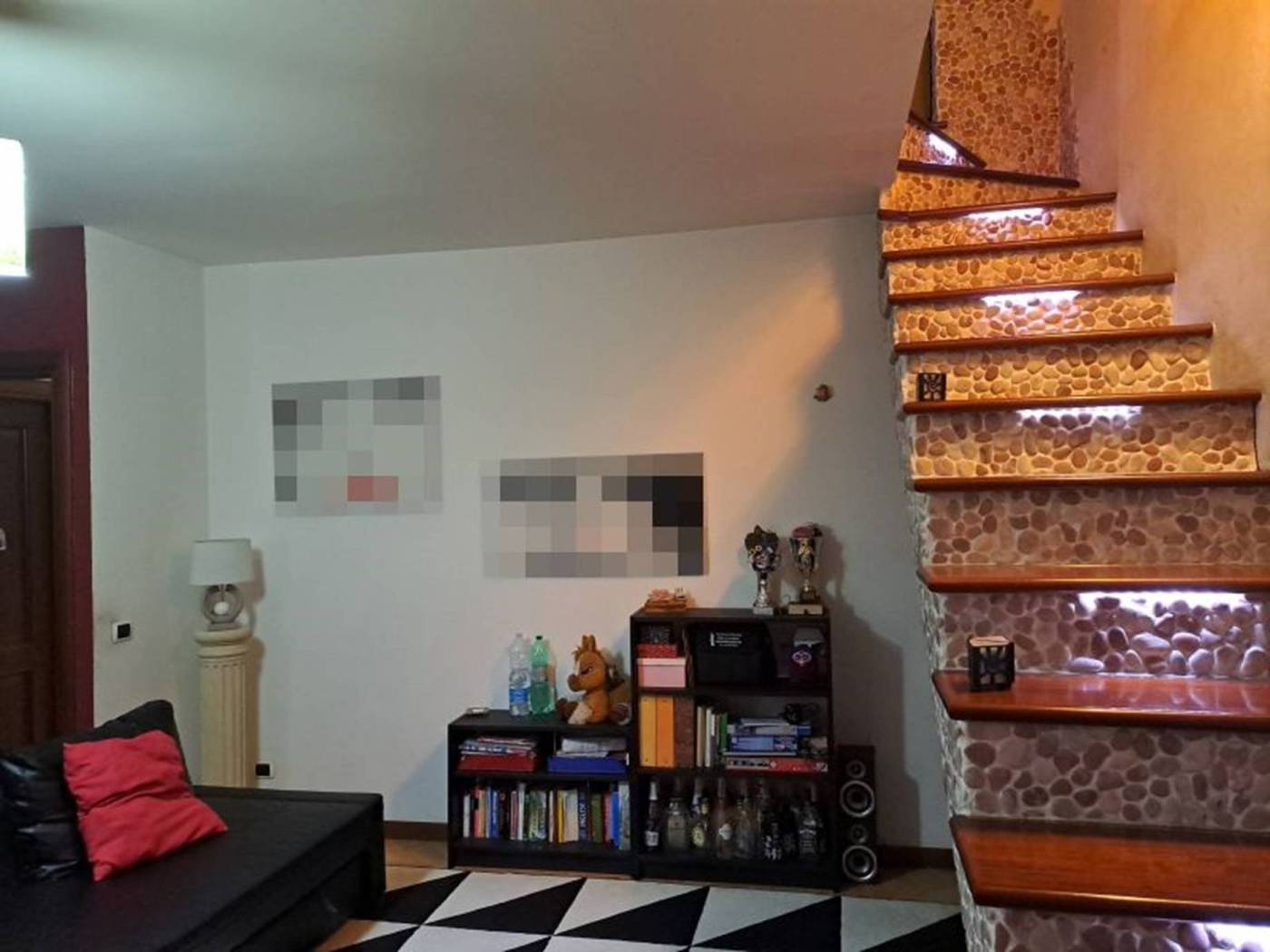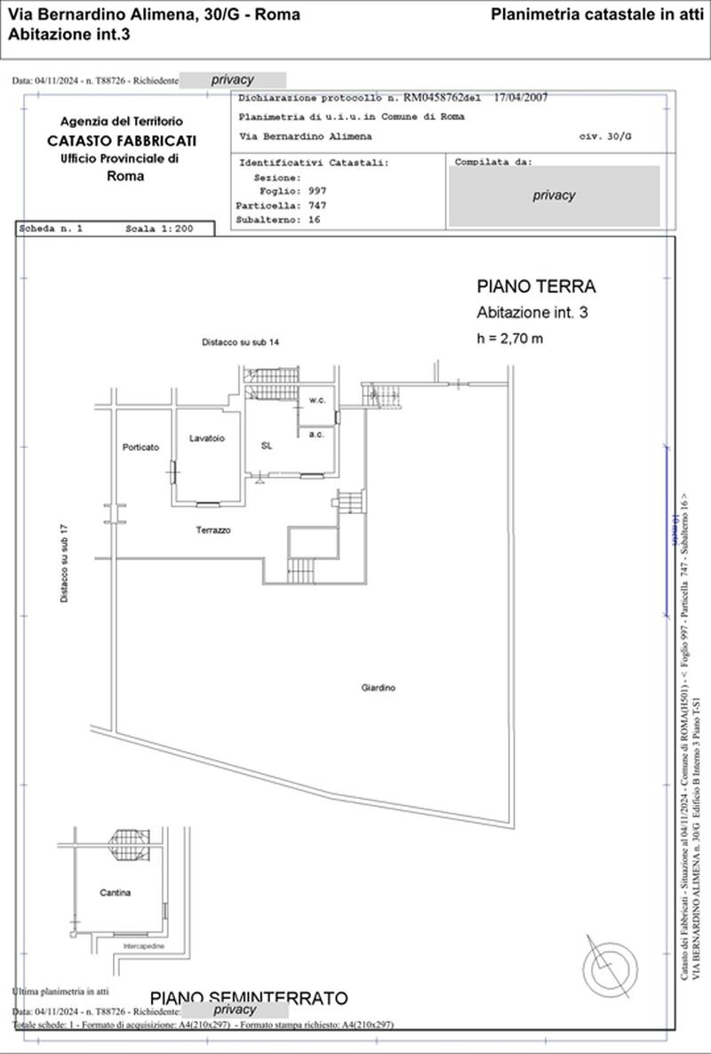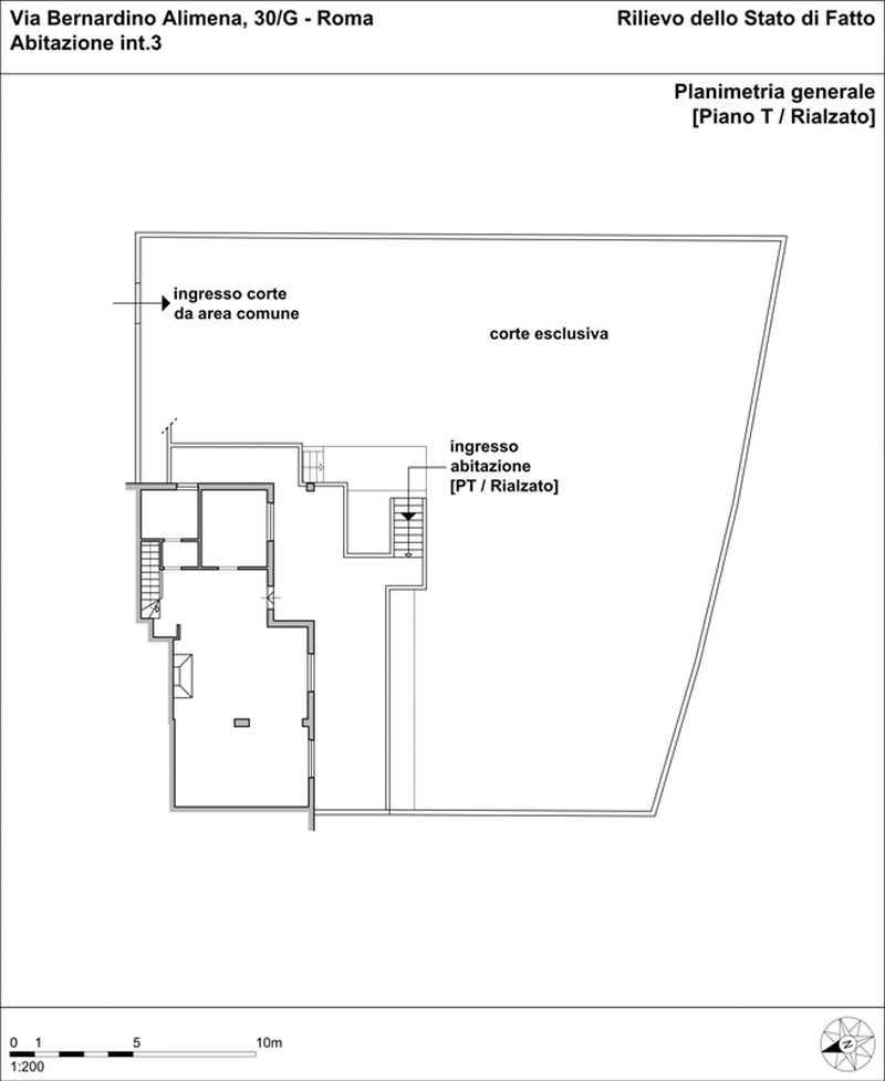 - Abitazione in villino posta su due livelli (S1 - T) con corte esclusiva, così composta : al Piano Terra (rialzato) da ampio terrazzo in parte coperto (collegato alla corte esclusiva da scala esterna), ingresso - salone doppio, cucina, disimpegno e bagno; al Piano seminterrato (collegato al PT da scala interna) da vano passante, disimpegno, tre camere e due bagni. Tale piano risulta collegato all'ampia corte esclusiva a mezzo di cortiletto coperto a livello e rampa di scale.