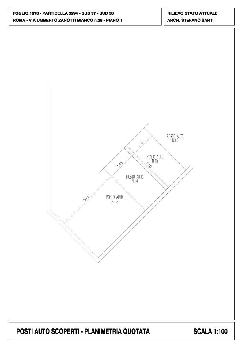 - N.2 posti auto scoperti posti al piano terra del complesso immobiliare, nel piazzale parcheggio, contrassegnati dai numeri 14 e 15, ed entrambe composti da singoli spazi di forma rettangolare di dimensioni 5,10ml x 2,45ml circa