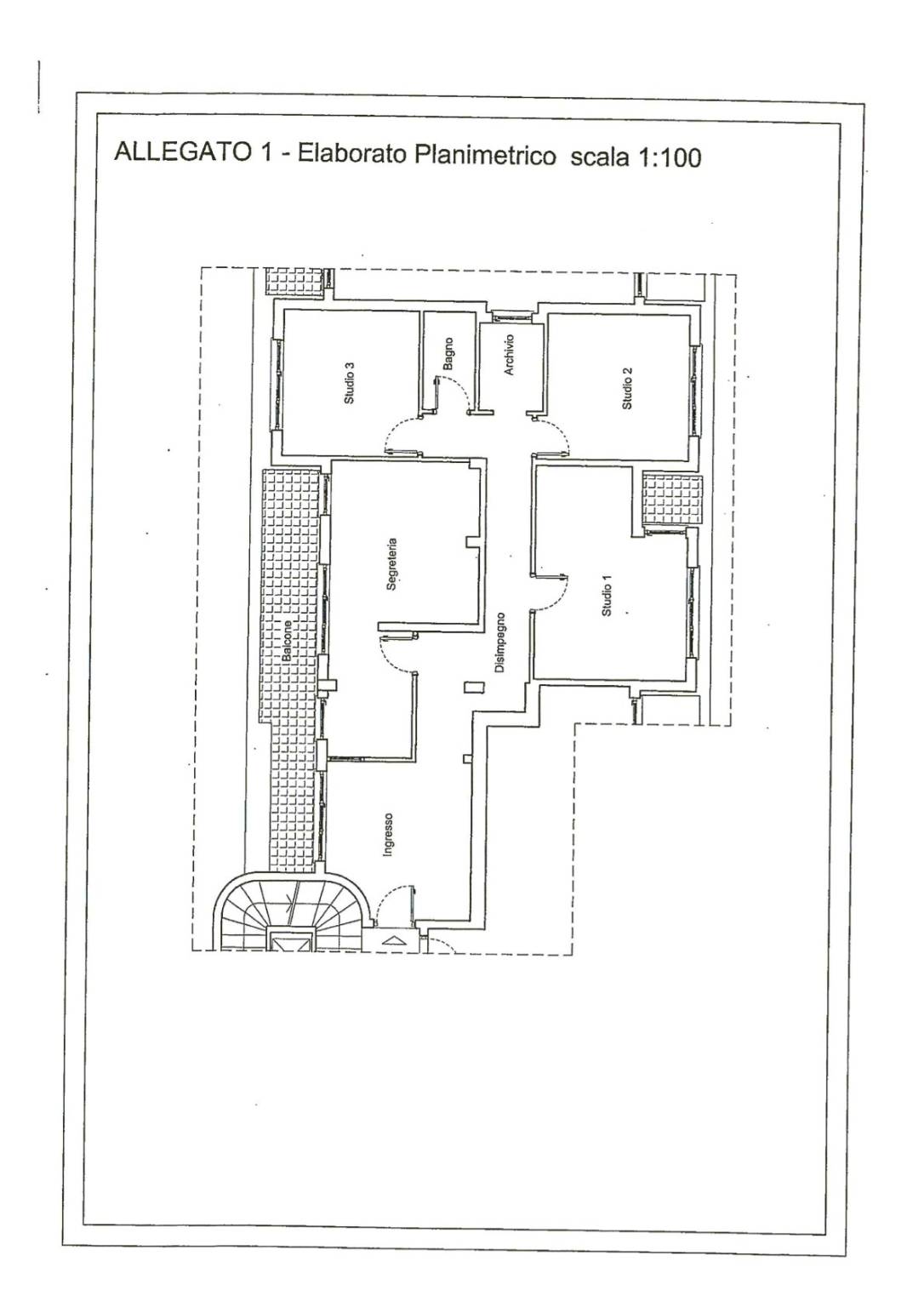 Appartamento attualmente adibito ad ufficio ma urbanisticamente e catastalmente a destinazione residenziale, composto da ampio ingresso, corridoio, 5 vani, bagno e balcone; oltre posto auto scoperto situato al piano terra.