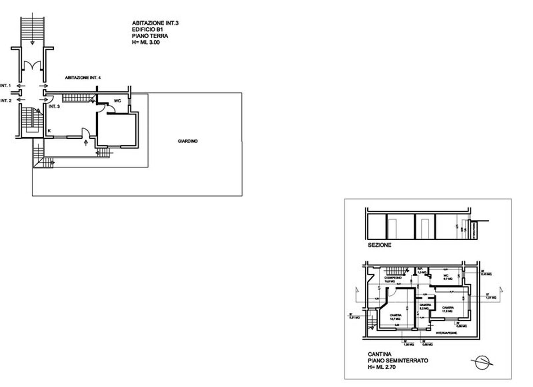 Quota 1/1 del diritto di piena proprietà del compendio immobiliare, edificio B1, piano T/S1, int. 3, consistente in un appartamento composto al piano terra da soggiorno, con annesso angolo cottura, camera, bagno, disimpegno, area pertinenziale a giardino, al piano seminterrato, con destinazione d'uso a cantina, da soggiorno, due camere, bagno, disimpegni, ripostiglio e in un posto auto scoperto, posto al piano terra, situato presso l'area antistante l'ingresso del fabbricato identificato con il n. 20.