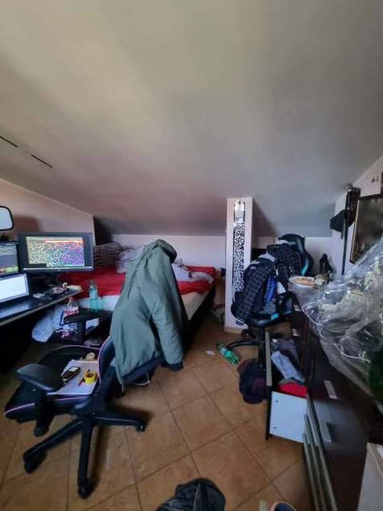 Bene N° 1 - Porzione di fabbricato a schiera ubicata a Roma (RM) - via Fosso dell'Osa 553/D, edificio B, interno 3, piano T-1. L'immobile oggetto della perizia è situato nel comune di Roma, località Villaggio Prenestino, un quartiere periferico nel settore est della città, al di fuori del perimetro del G.R.A. tra la via Prenestina Nuova e il raccordo autostradale della A24 Roma L'Aquila. La zona è caratterizzata da insediamenti spontanei realizzati abusivamente intorno agli anni 70 e successivamente condonati. I servizi di quartiere sono sufficienti e la località è caratterizzata per la maggior parte da fabbricati di tipologia spontanea con rifiniture economiche. E' collegata con il centro e con il G.R.A. dalla vicina via Prenestina Nuova e dall'uscita dell'A24 Ponte di Nona distante circa km. 2. Il fabbricato che ospita l'immobile fa parte di un complesso di tre fabbricati di villini a schiera che si sviluppano su tre livelli: il piano seminterrato destinato a garage, il piano terra destinato ad abitazione e il piano primo destinato a soffitta. Oggetto del pignoramento è il villino n. 3 della palazzina “B” che si sviluppa su tre livelli: il piano seminterrato, catastalmente destinato a garage, è stato trasformato, in assenza di titolo, in un'unità immobiliare abitativa composta da soggiorno con angolo cottura, camera da letto e bagno; il piano terra è destinato ad abitazione con un soggiorno, una cucina (ricavata dalla trasformazione abusiva del locale accessorio originariamente a destinazione non residenziale), una camera da letto, un bagno e un balcone; il piano sottotetto è destinato a soffitta ma è stato trasformato in assenza di titolo abilitativo in una mansarda con una camera da letto e un bagno.