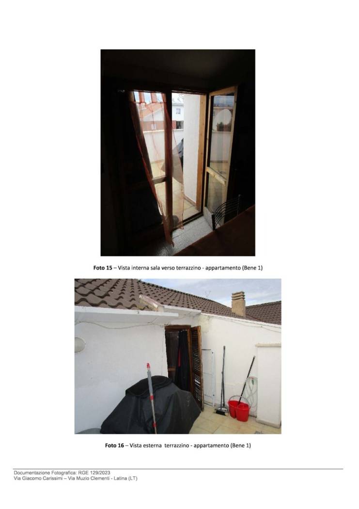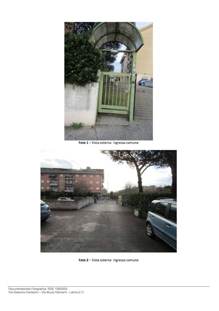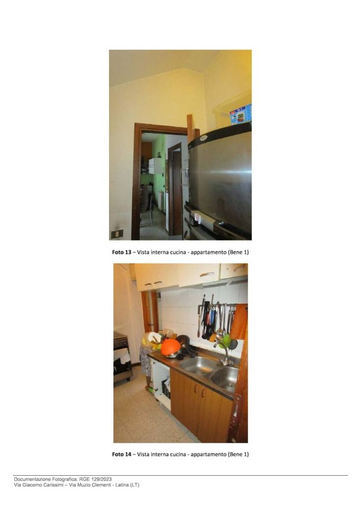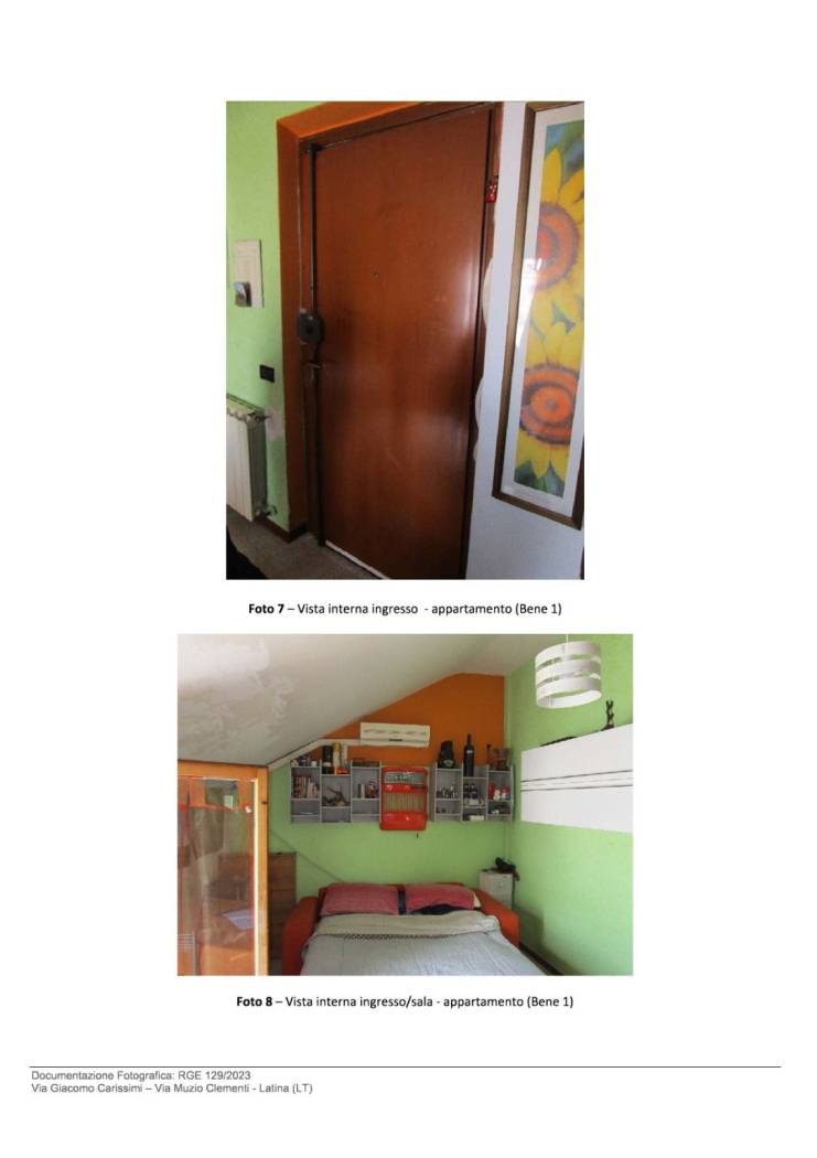 Bene N° 1 - Appartamento ubicato a Latina (LT) - Via Giacomo Carissimi, 25, scala E, interno 13, piano 4. L'unità immobiliare è inserita in un contesto residenziale all'interno di un edificio disposto su cinque livelli fuori terra e uno interrato. L'appartamento è posto al piano quarto, composto da ingresso, cucina-sala pranzo con affaccio su terrazzino, disimpegno, bagno finestrato, una camera da letto con finestra, una camera pluriuso con porta finestra e un piccolo balcone.