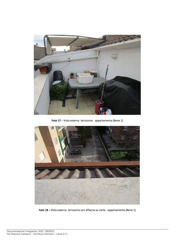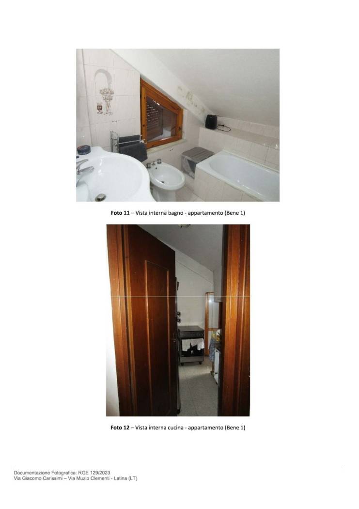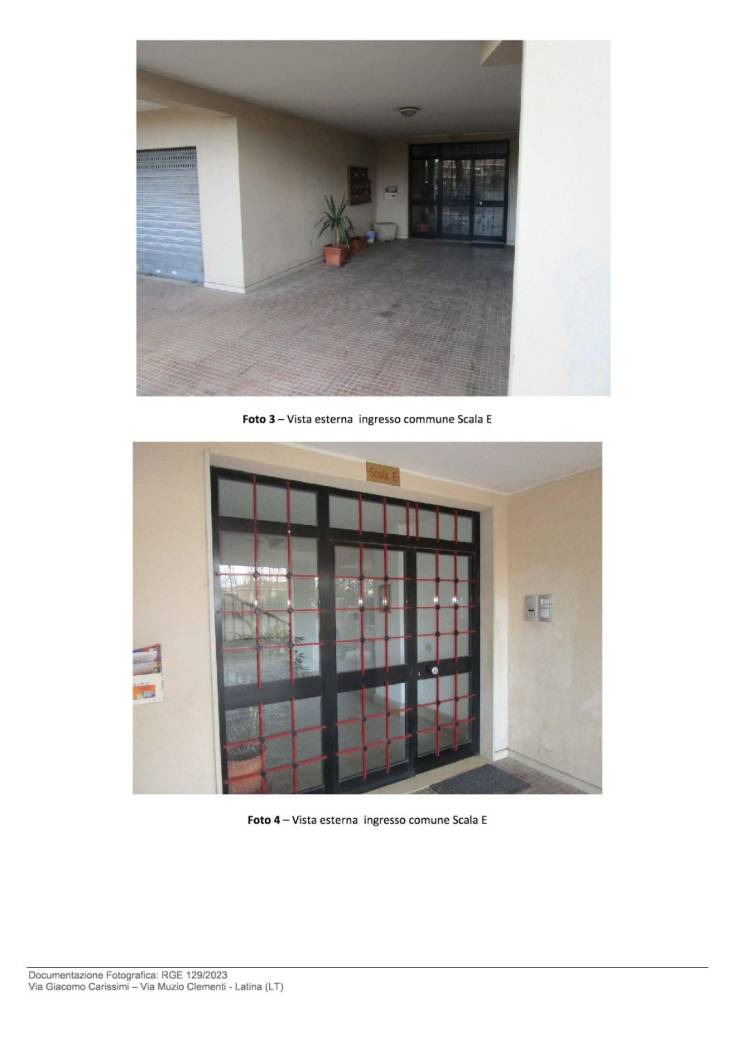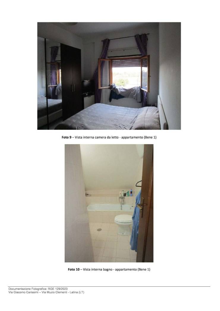 Bene N° 1 - Appartamento ubicato a Latina (LT) - Via Giacomo Carissimi, 25, scala E, interno 13, piano 4. L'unità immobiliare è inserita in un contesto residenziale all'interno di un edificio disposto su cinque livelli fuori terra e uno interrato. L'appartamento è posto al piano quarto, composto da ingresso, cucina-sala pranzo con affaccio su terrazzino, disimpegno, bagno finestrato, una camera da letto con finestra, una camera pluriuso con porta finestra e un piccolo balcone.