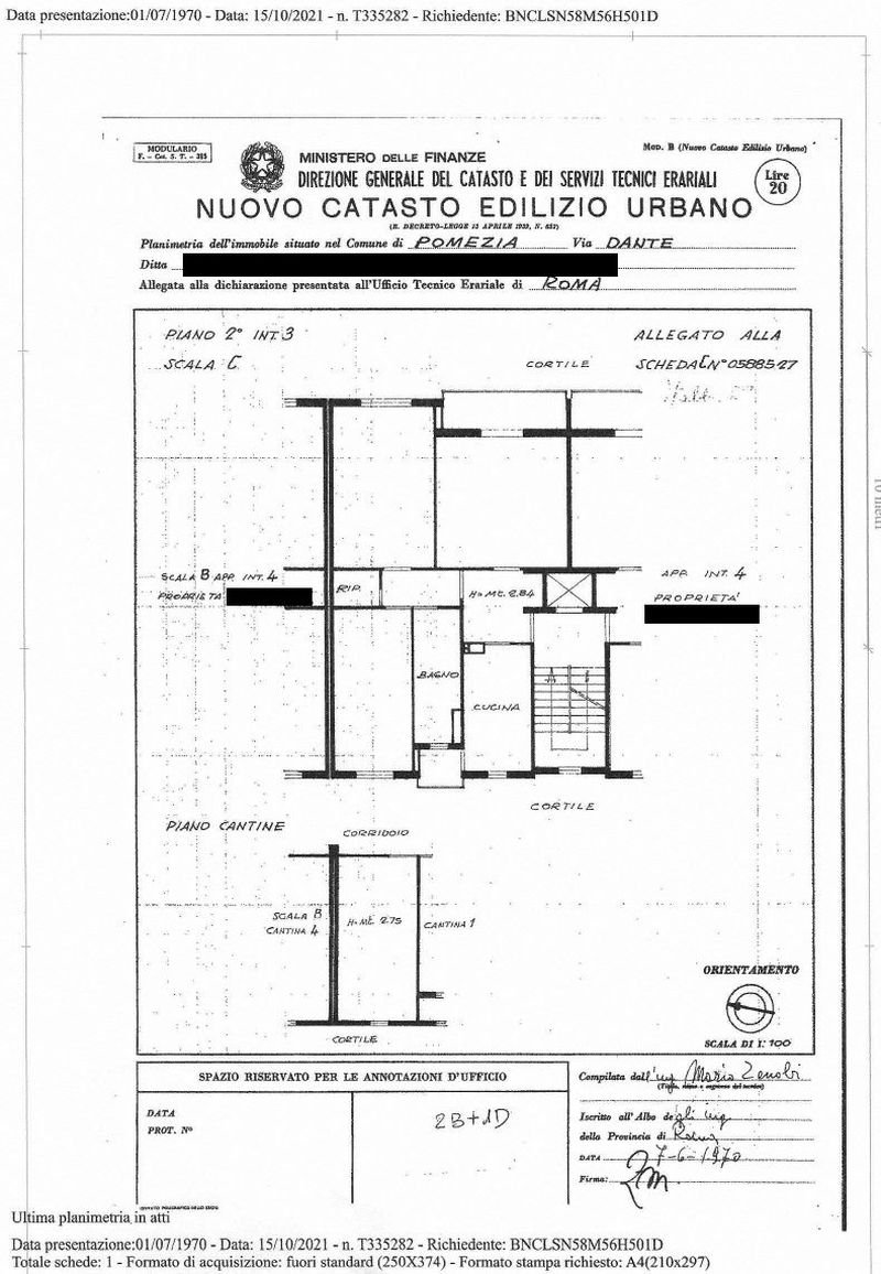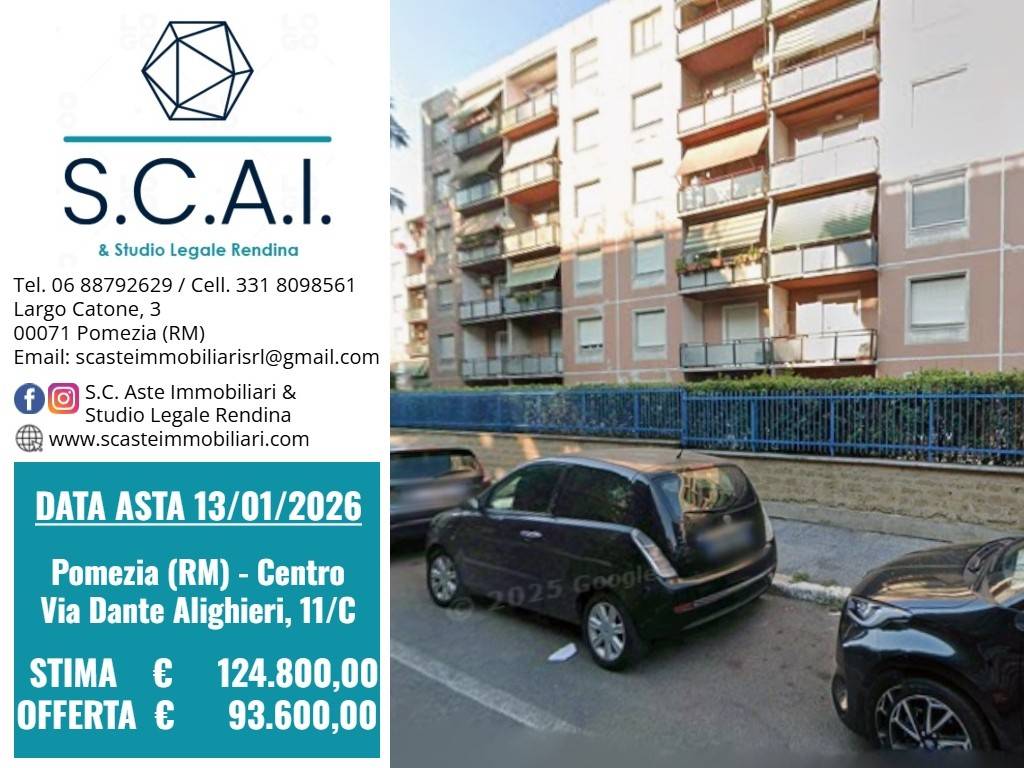Piena proprietà dell'appartamento sito nella zona centrale del Comune di Pomezia, in Via Dante Alighieri 11/C, edificio A/2, scala C , interno 3, piano 2° con pertinenziale cantina posta al piano seminterrato distinta col numero tre (n. 3), vicino a tutti i principali servizi quali: bar, tabacchi, supermercati, posta, attività commerciali di vario genere, attività di ristorazione e facile accesso alle strade urbane e extraurbane scuole di ogni ordine e grado; composto da ingresso, soggiorno, cucina, 2 camere da letto, bagno, ripostiglio e 2 balconi.