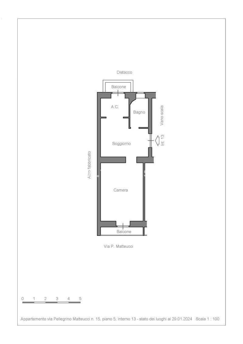 Appartamento ubicato a Roma (RM) - Via Pellegrino Matteucci n. 15, interno 13, piano 5 100% di piena proprietà di appartamento residenziale sito a Roma, in via Pellegrino Matteucci n. 15, interno 13, posto al piano quinto di un fabbricato dotato di impianto ascensore. L'immobile è ubicato nel quartiere X “Ostiense”, Municipio VIII, situato a sud del centro storico di Roma, caratterizzata da un passato industriale e un presente di street art, locali e ristoranti, nonché di importanti monumenti storici come la Basilica di San Paolo fuori le mura e la Piramide Cestia. L'appartamento è composto da un soggiorno con angolo cottura, una camera da letto, un bagno e due balconi.