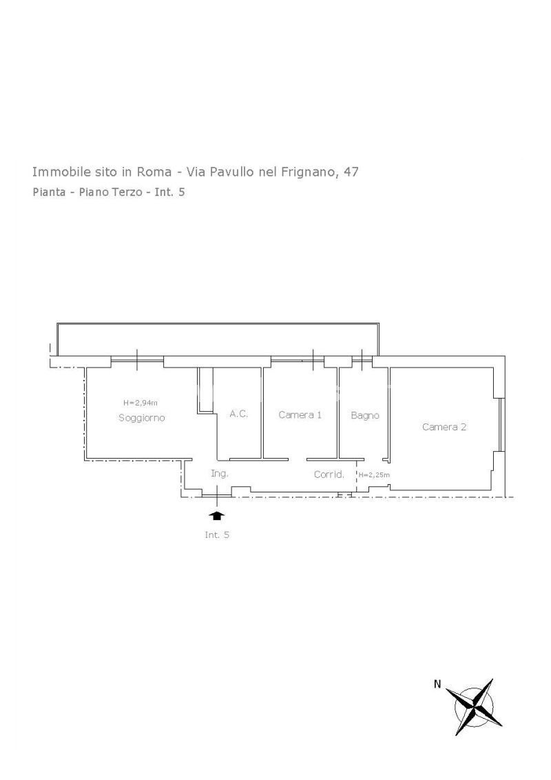 Quota pari a 1/1 del diritto di piena proprietà su appartamento uso civile abitazione posto al piano terzo del fabbricato sito nel Comune di Roma, Municipio X, quartiere Casal Bernocchi, alla Via Pavullo nel Frignano n.47, identificato con il numero interno 5. L'appartamento, si compone di ingresso/corridoio, soggiorno con angolo cottura, 2 camere e bagno ed è dotato di un balcone; il tutto, per una superficie commerciale complessiva di circa mq. 77,35 mq.