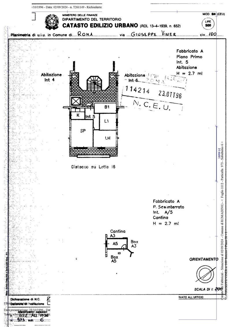- Bene N° 1 - Appartamento ubicato a Roma (RM) - via Giuseppe Viner 100, interno 5, piano 1- S1, composto da ingresso, soggiorno, cucina, due camere, un bagno e balcone Completa la dotazione la cantina posta al piano S1, con accesso diretto dal box auto di cui al bene n.2.