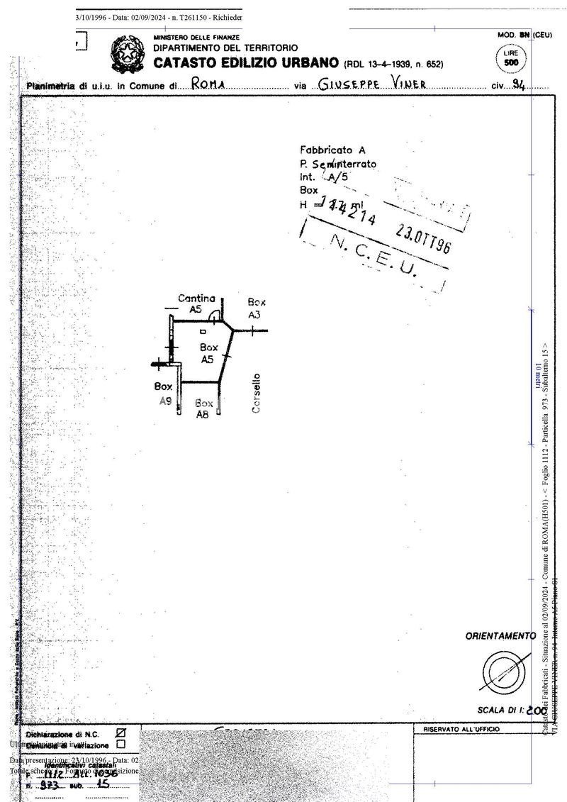 - Bene N° 2 - box auto di 18 mq, con accesso da via Giuseppe Viner 94 in Roma, interno A5, piano S1.