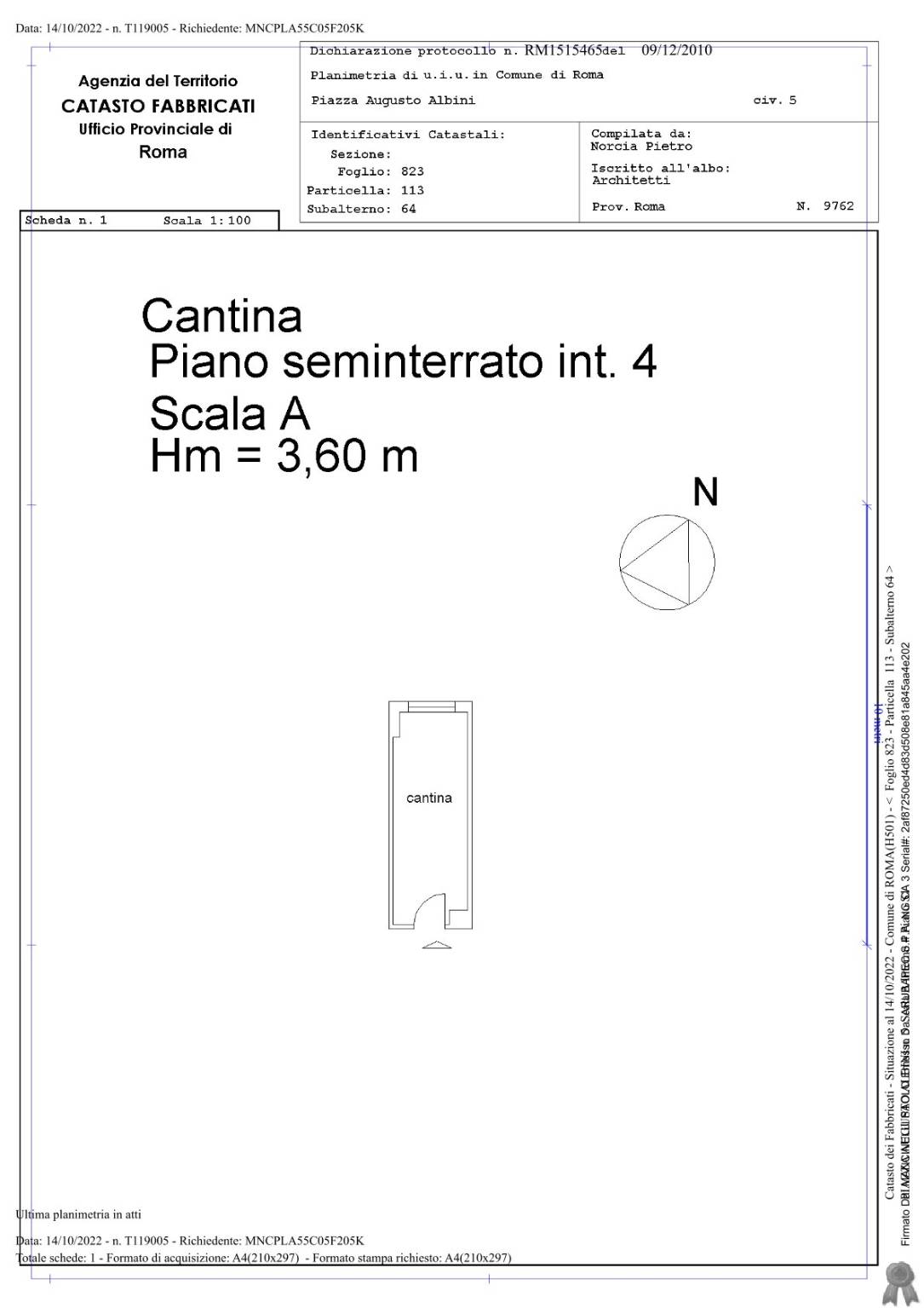 - Cantina di pertinenza sita al piano interrato della scala A e distinta con l'interno 4.