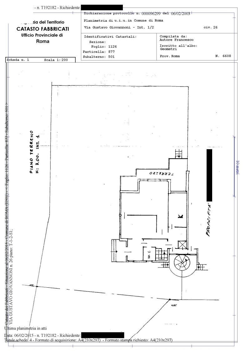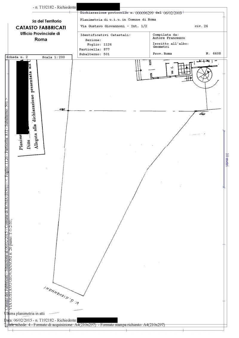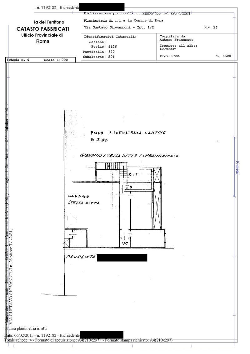 Villa ubicata a Roma (RM) - via Gustavo Giovannoni n. 26, piani T-1-2-S1, con giardino esclusivo e piscina.L'immobile si estende su 4 livelli e vi si accede direttamente da una strada pubblica, via Gustavo Giovannoni. La zona in cui sorge l'immobile si trova al di fuori del Grande Raccordo Anulare di Roma nel quartiere Tor dè Cenci. Questa zona periferica di Roma ha destinazione per di più residenziale e l'immobile in questione si trova in una zona a bassa densità urbanistica, in quanto sono presenti molte ville. L'immobile, in particolare, si trova molto vicino all'importante asse viario di via Cristoforo Colombo, che collega il centro di Roma al quartiere di Ostia. L'immobile (villa) si estende su 3 piani più uno interrato, dove si trova anche il garage, che, però, è stato trasformato in tre mini appartamenti.