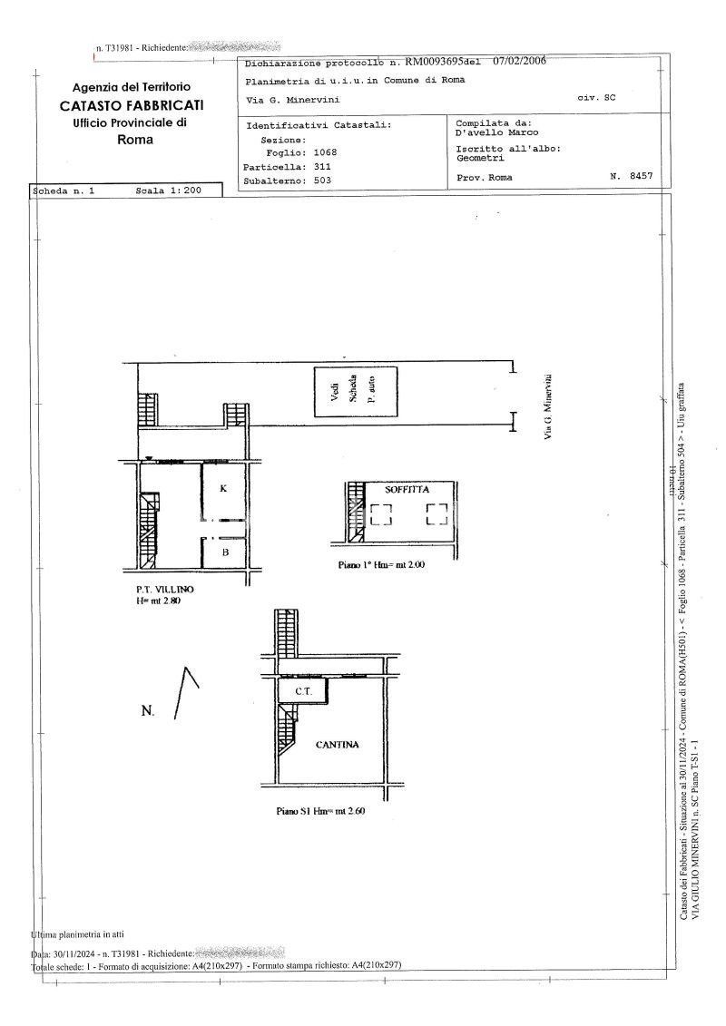 Piena proprietà di porzione di villino quadrifamiliare sito nel comune di Roma – località Ostia Antica ‐ via Giulio Minervini, 171/173 – piano S1 / T /1°, così composto: