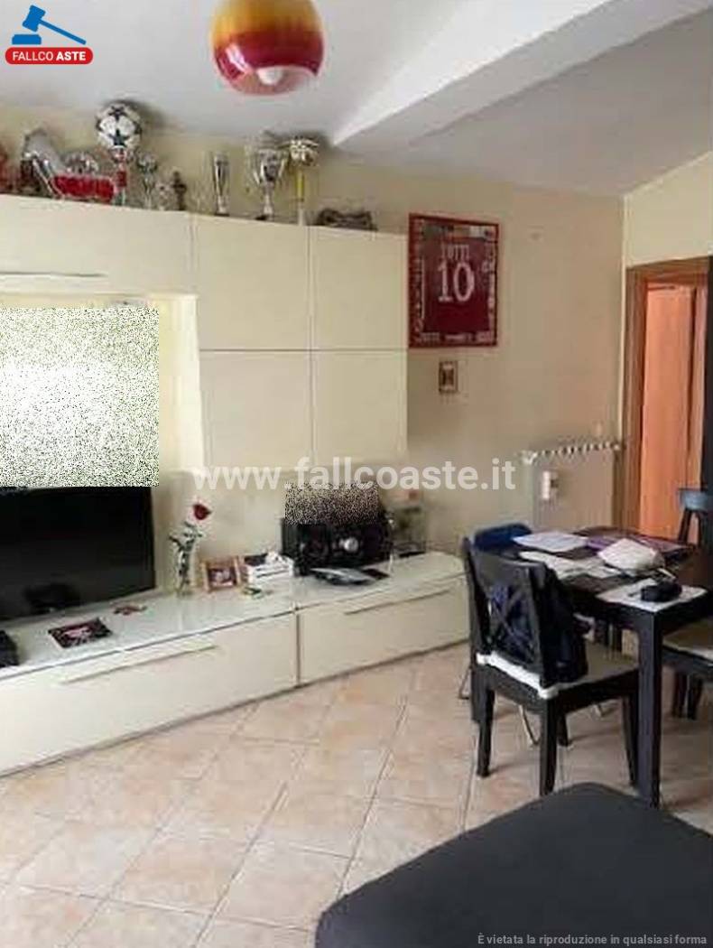 Quota pari a 1/1 del diritto di piena proprietà sull'appartamento sito in Roma – via Tullio Ascarelli 183 Int. 4 piano primo, composto da soggiorno-pranzo con angolo cottura, disimpegno, stanza da letto singola, stanza da letto matrimoniale, bagno e n. 2 balconi, oltre posto auto scoperto, int. 4 PT, ubicato nello spazio scoperto, a quota più bassa rispetto alla palazzina, raggiungibile tramite rampa carrabile.