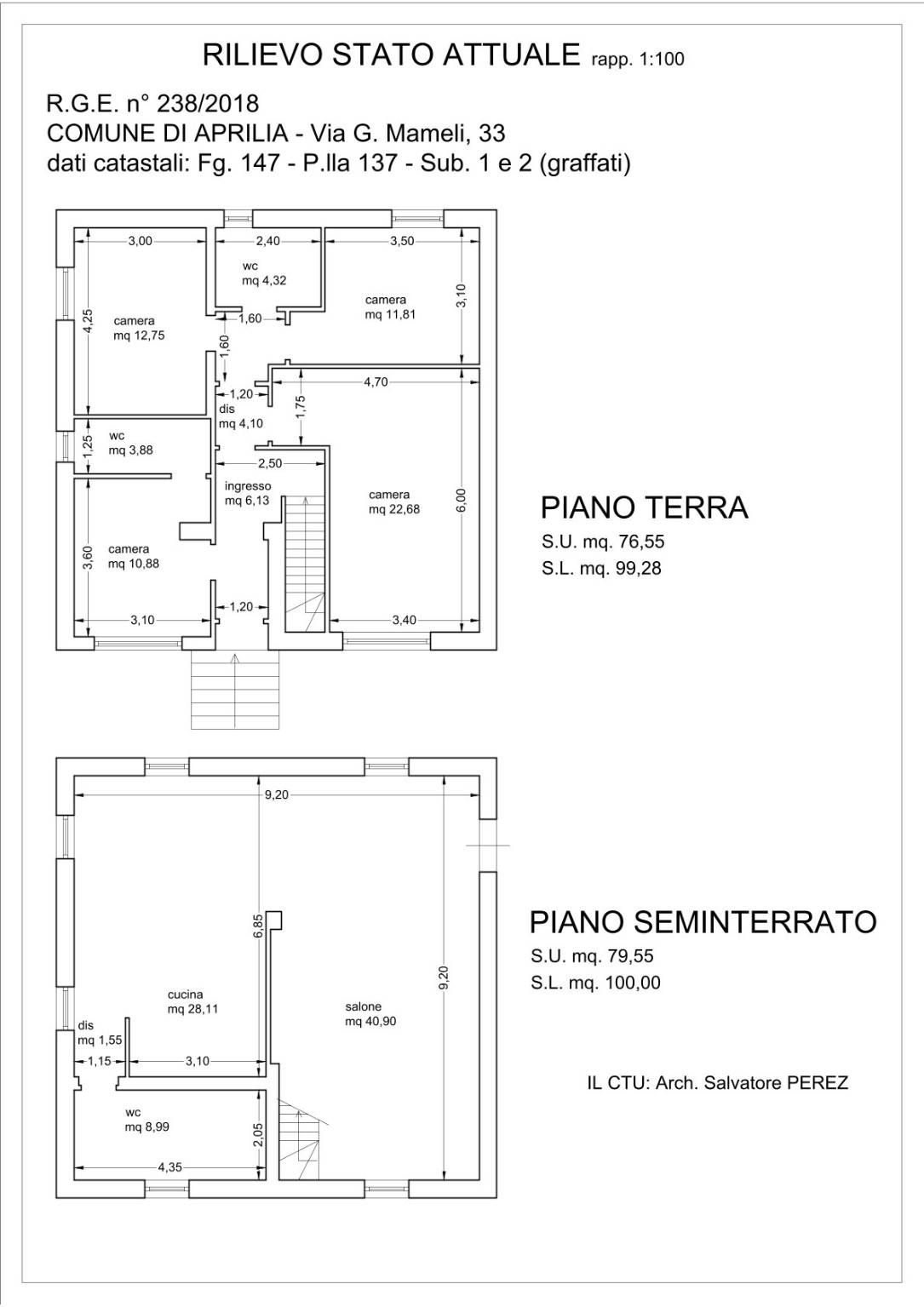 | Immobile - seminterrato | 100 Mq | 50 Mqc |