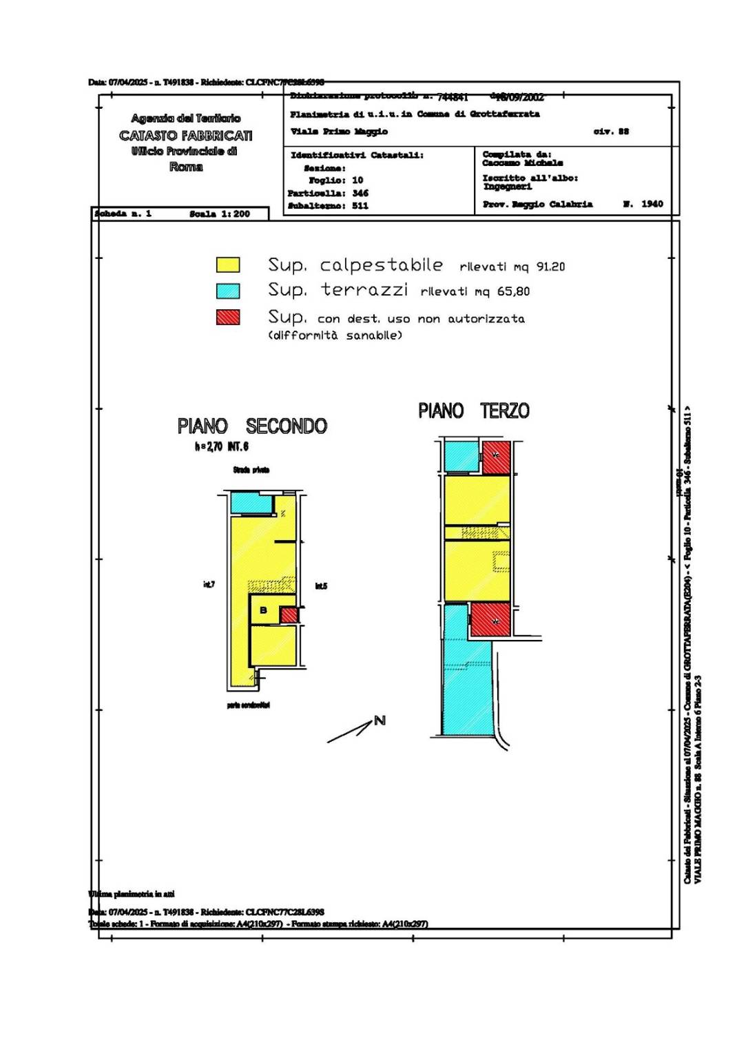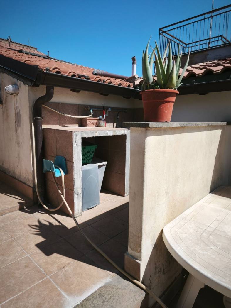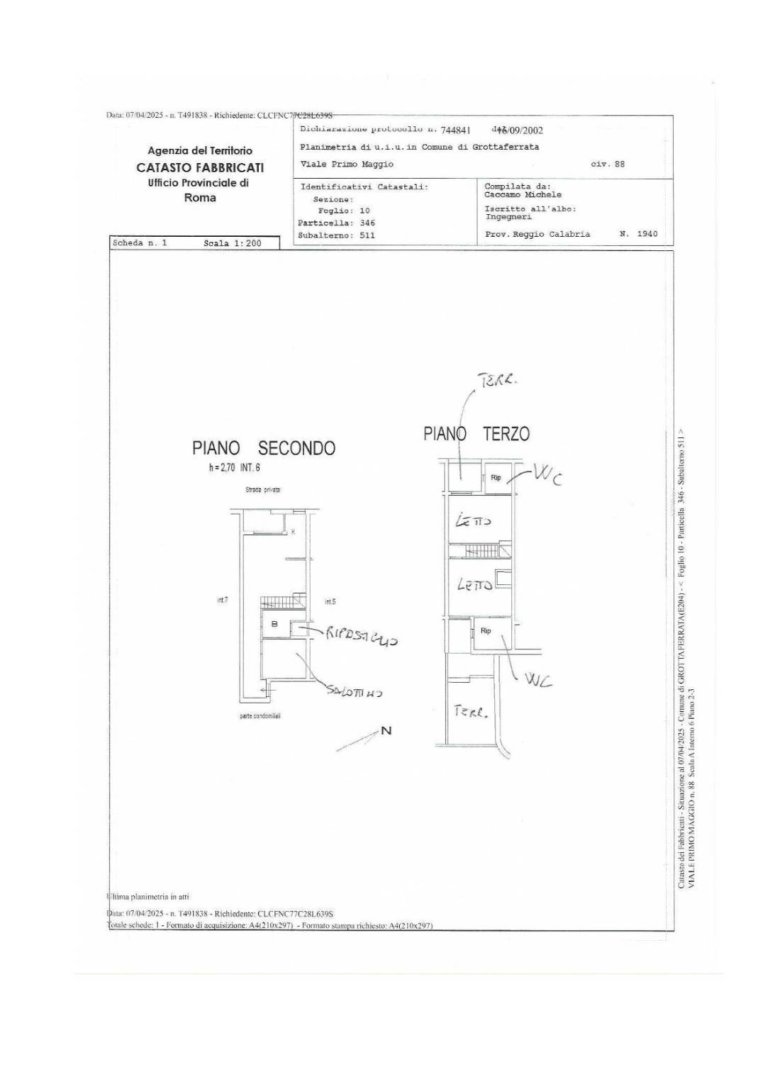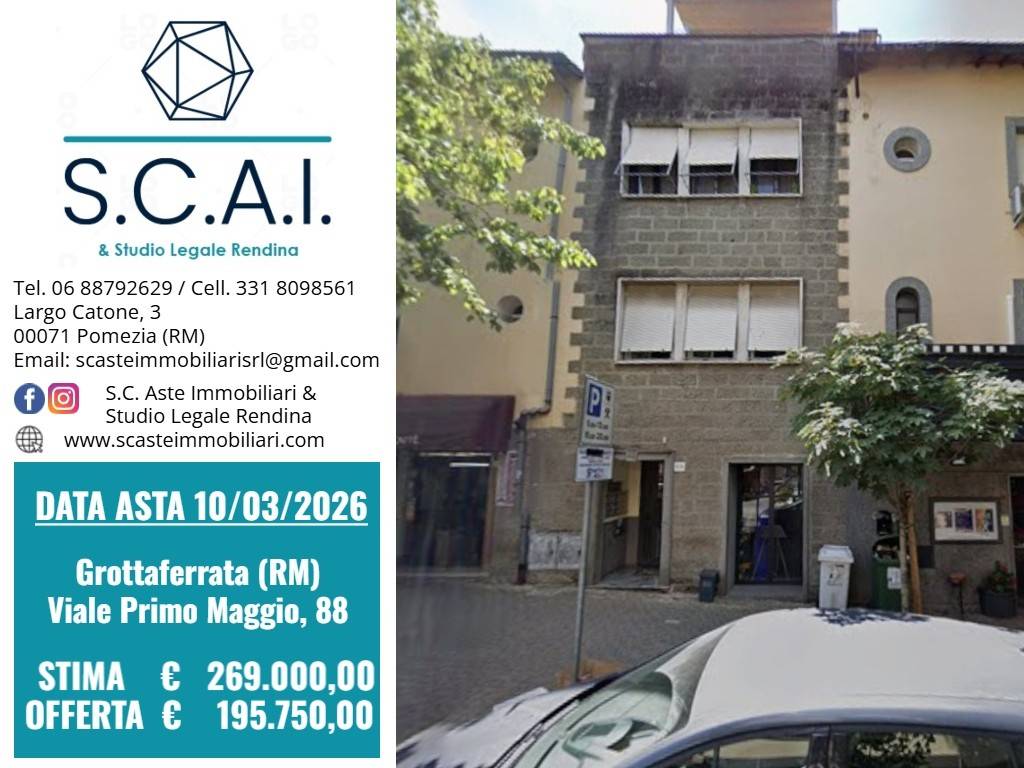 Diritto di piena proprietà dell'appartamento sito in Grottaferrata (RM) - Viale Primo Maggio, 88, scala A, interno 6. L'appartamento è disposto su due livelli: al piano secondo si trovano soggiorno con angolo cottura, bagno ripostiglio, salotto e terrazzo; al piano terzo si trovano due camere da letto, due bagni e due terrazzi.
