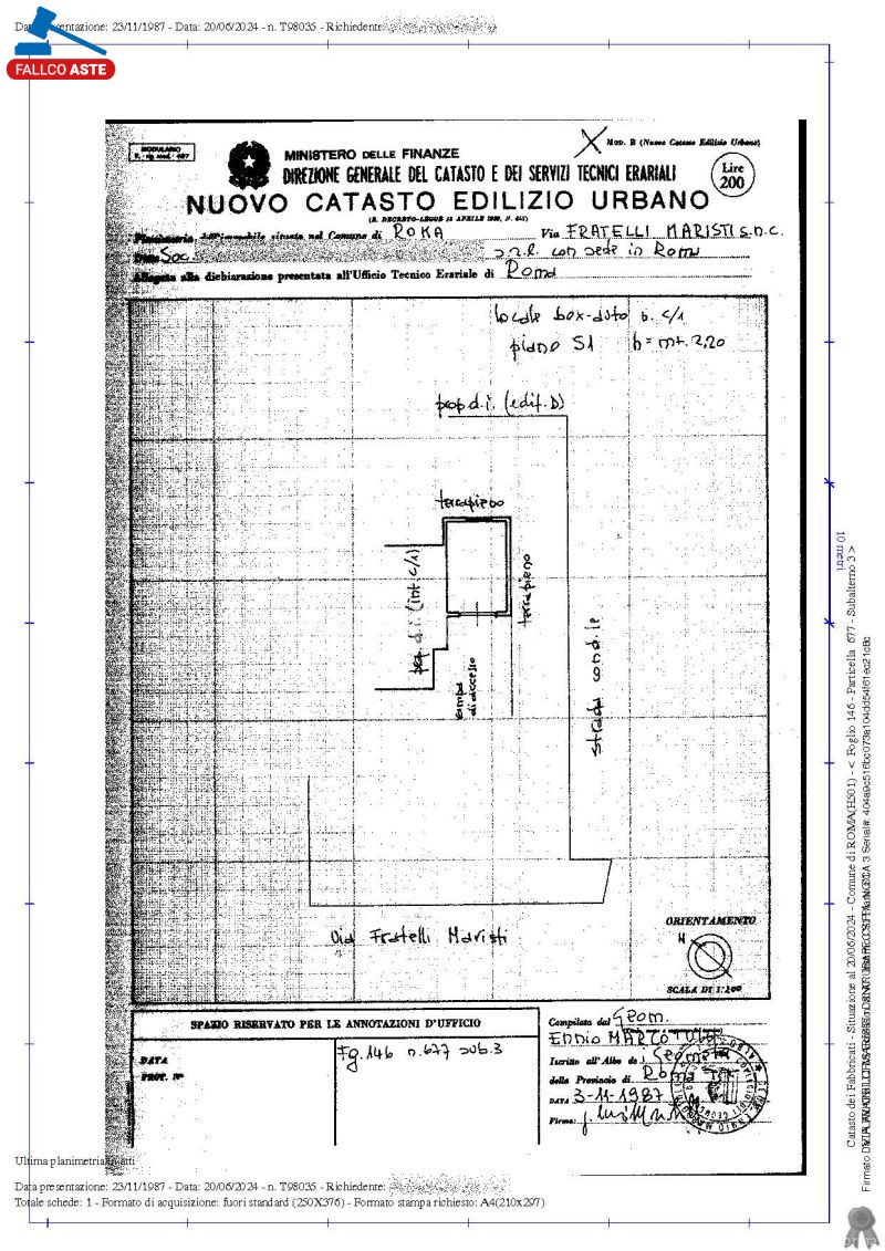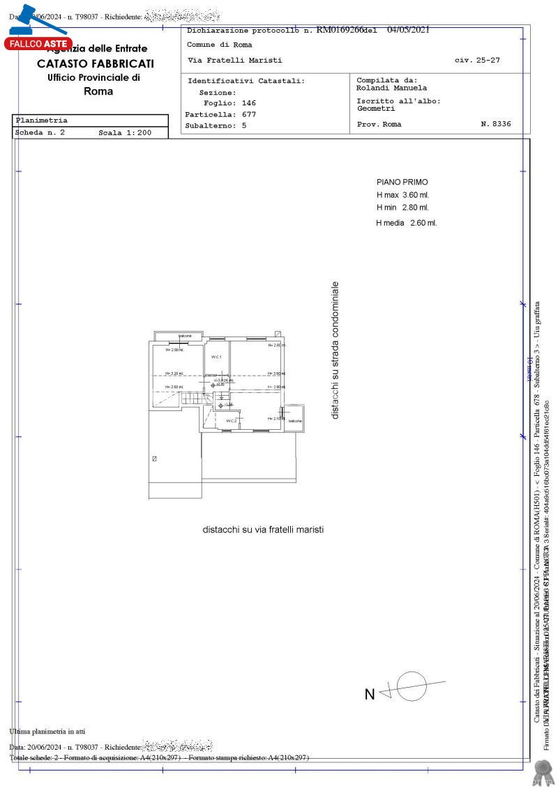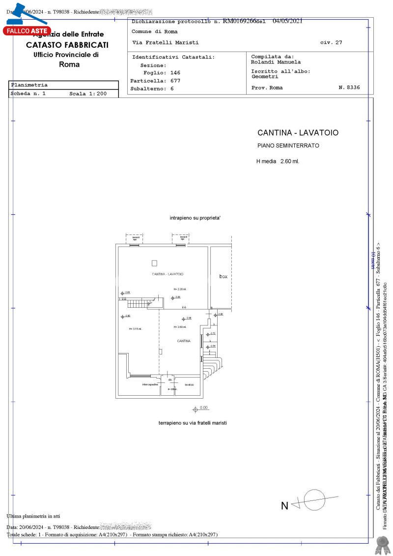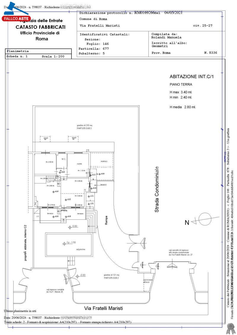 Quota pari ad 1/1 del diritto di piena proprietà sui seguenti immobili siti in Roma (RM), Via Fratelli Maristi n. 25-27, interno C1: porzione di villino bifamiliare, ai piani T-1, con ampia corte pertinenziale, in parte pavimentata con piscina ed in parte a verde, locale cantina e box auto al piano S1. Gli immobili, aventi doppio accesso dalla strada pubblica, al civico 25, e dall'ingresso condominiale, al civico 27, sono inseriti in un complesso residenziale costituito da 8 villini bifamiliari e servito da viabilità interna ad uso esclusivo dei condomini. La porzione di villino bifamiliare, circondata dall'ampia corte esterna, in parte pavimentata ed in parte a verde, con piscina, locale tecnico e magazzino, è composta al piano terra da soggiorno su due livelli, separati da tre gradini, articolato in salotto e zona pranzo che si affacciano sul terrazzo, una cucina abitabile, cui si accede scendendo ulteriori tre gradini, con affaccio su area pavimentata coperta da tettoia in legno, una camera da cui si accede alla corte esclusiva ed un bagno; al piano primo da zona notte con due camere, di cui una con balcone, un bagno, e da una camera più piccola con balcone ed ulteriore bagno raggiungibili tramite due gradini.
