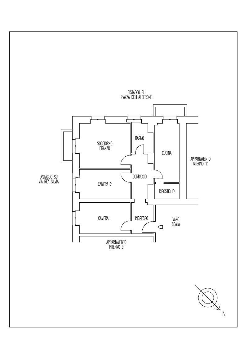 Quota pari a 1/1 del diritto di piena proprietà su appartamento sito in Roma – Piazza dell'Alberone 10, int. 10, piano terzo (catastalmente quarto), composto da ingresso, corridoio, due camere, soggiorno-pranzo, cucina con ripostiglio, bagno e due balconi.